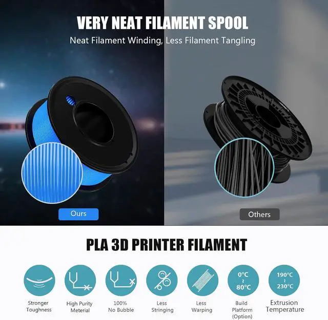 FLEXIBLE AND TOUGHHaosegd 5 Color pla filiment 1.75 is good winded without tangle and clogging. It also has strong adhesion, good melt, stable feeding and no warpage etc, ensuring its gorgeous printing effect.