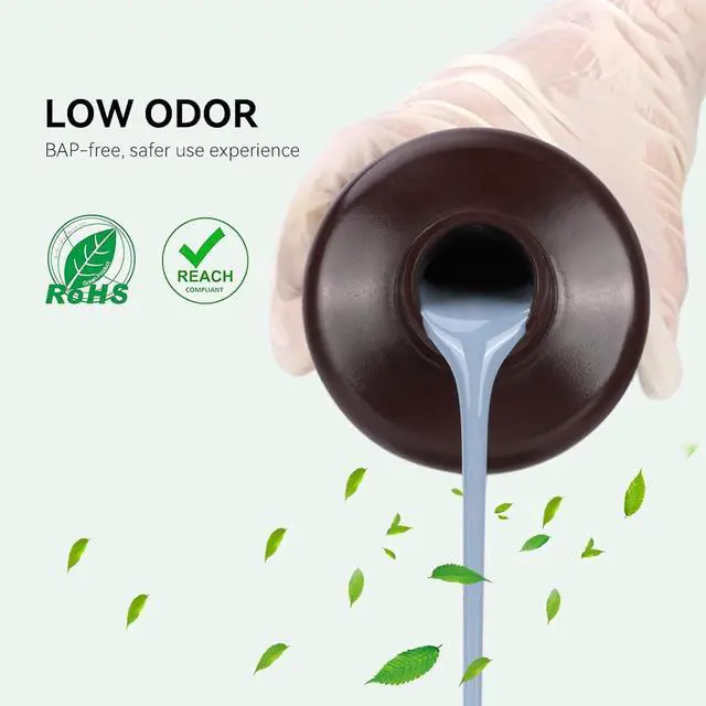 • Low Odor This ELEGOO 3d printing resin has a very light odor and no irritating odor. It is an ideal choice for 3D printing enthusiasts who are allergic to irritating odors.