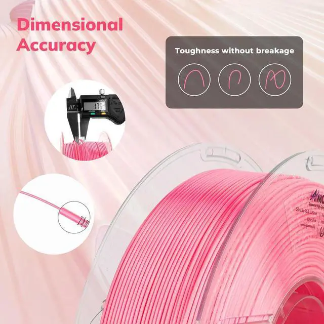 1.75 mm High Compatibility & Accuracy: Shiny Silk PLA Printer Filament meets Higher Standard diameter tolerance of/ 0.02 mm, Strict tolerances guarantee these PLA filaments of 1.75 mm making it much smoother and stable