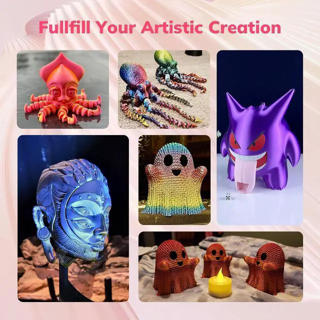 Beginner & expert friendly: Achieve a smooth and shiny finish - AMOLEN high-quality silk PLA filament is perfect for printing decorative objects and crafts that look as smooth and shiny as real silk, perfect for arts, crafts, DIY