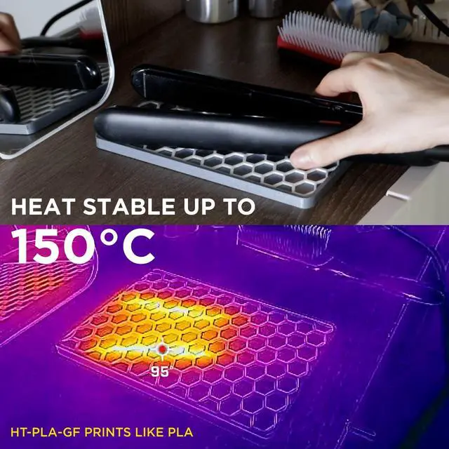 High Heat Stability - Withstands temperatures up to 150°C, making it ideal for hot environments like garages, car interiors, or sun-exposed surfaces. HT-PLA-GF resists warping or deformationperfect for garden tools, garage organizers, and vehicle-mounted parts.