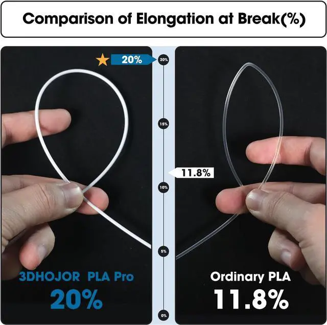 Higher strength and better toughnessCompare with PLA, it has higher strength and better toughness. High Purity & High Precision. Low Shrinkage & Strong Layer Adhesion.