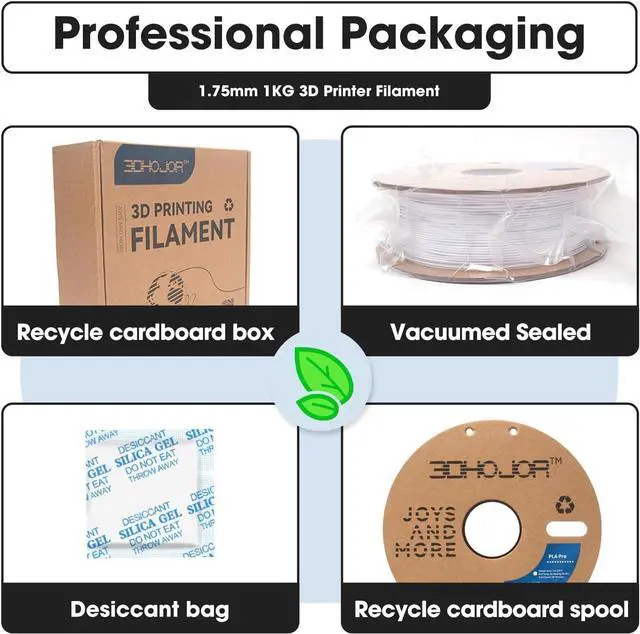 Environmentally FriendlyExtracted and purified from corn grain and harmless to the human body. Low Odor and Non-toxic; 3DHoJor PLA Pro 1.75 mm Filament with Recycle carboard Spool.