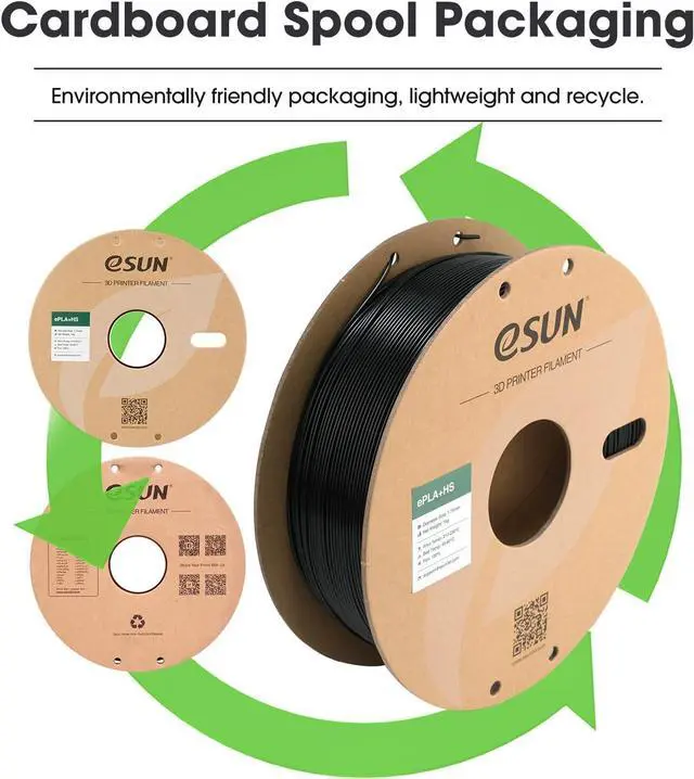 Environmental Friendly Package & Cardboard ReelTangle free and no plugging. Full 1KG 3D printer filament reel, perfect roundness and very tight diameter tolerance, good winding, does not overlap or tangle. Melt well, feed smoothly and constantly without clogging the nozzle or extruder. Recyclable spool and vacuum sealed packaging box.