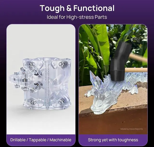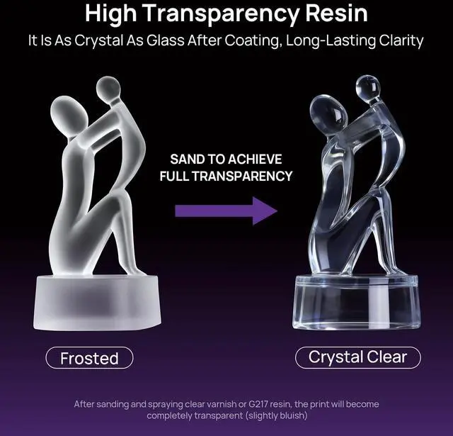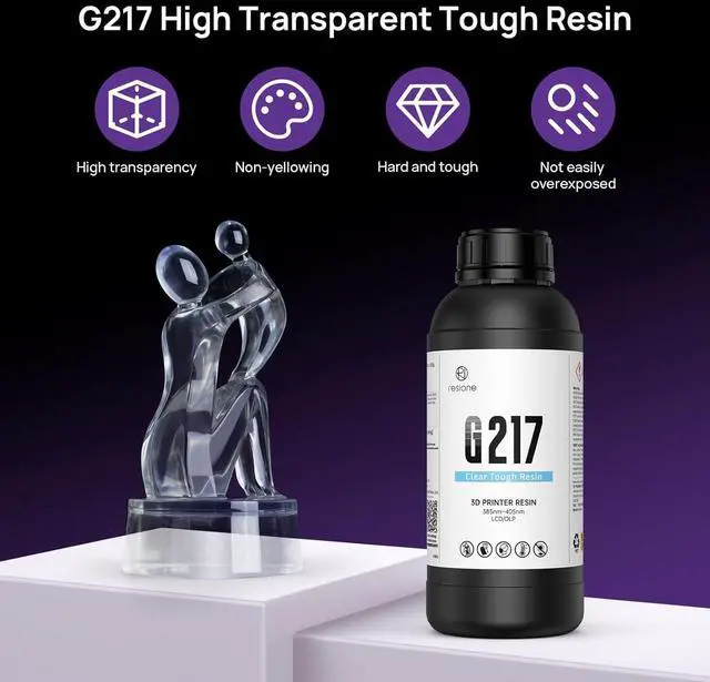 Wide range of applicationsRESIONE G217 3D printer transparent resin is ideal for Miniature&Figures, Transparent Special-Effect Parts, Transparent Prototypes, Enclosure, High-strength Impact-resistant parts for short-term use, Transparent Props, Artwork, Home Décor Items, Educational&Scientific Models