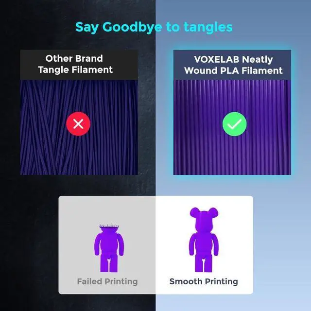 • Premium PLA FilamentsClog-Free, Bubble-Free, Tangle-Free, Low warping, perfect 3D Printer PLA Filament 1.75mm for smooth and stable 3D printing experience, making printed parts an outstanding surface finish.