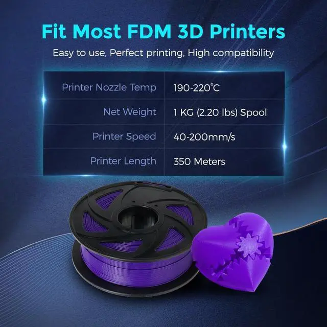 Premium PLA FilamentsClog-Free, Bubble-Free, Tangle-Free, Low warping, perfect 3D Printer PLA Filament 1.75 mm for smooth and stable 3D printing experience, making printed parts an outstanding surface finish.