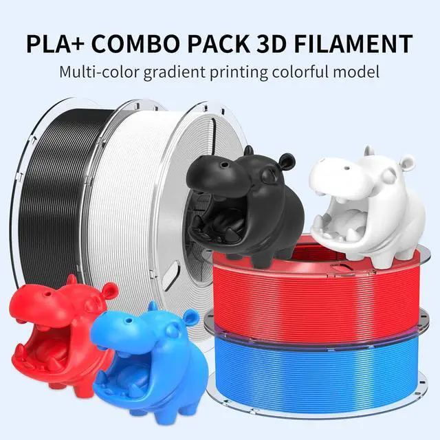 Advanced Properties4 KG PLA plus filament offers excellent ductility, making it less brittle than standard PLA. This type of filament including 4 colorsblack/white/blue/red, allows you to produce beautifully colored objects, making it especially suitable for creating attractive gifts and decorative items.