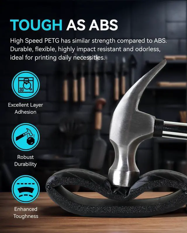Combining PLA and ABS- PETG 3D printer filament combines the advantages of both PLA 3D printer filament and ABS 3D printer filament, ease to use like PLA, durable strength like ABS.