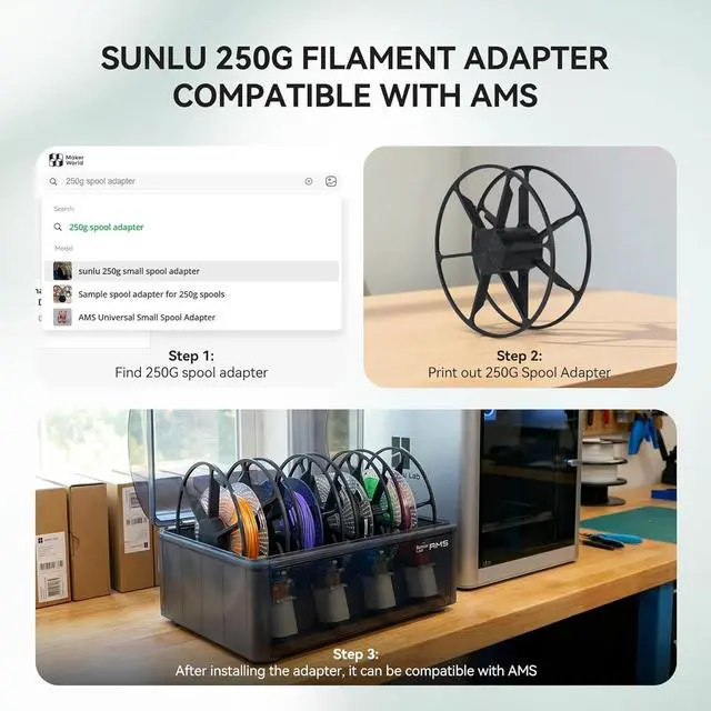 , SUNLU 250G Filament AdapterPrint the SUNLU 250G filament spool adapter for compatibility with AMS and numerous printers.