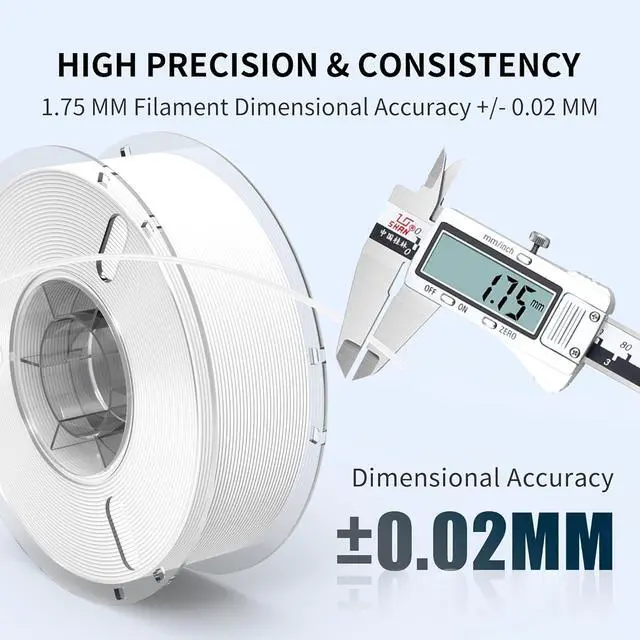 Stable Dimensional ToleranceWith minimal diameter tolerance and low warping, this filament ensures consistent feeding and stable printing. It provides good layer adhesion, minimal stringing, no bubbles, no cracking, and easy handling resulting in a smooth surface finish and high precision.