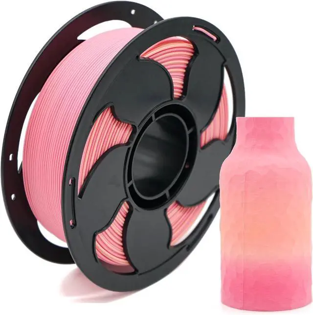 Vibrant Gradient ColorsGradient Rainbow Matte Spring PLA Filament. The smooth gradient color transitionit between pink and yellow-orange is very suitable for printing DIY Projects, Cosplay and Prototyping. Bring you smooth color transition and surface finish, Hassle-Free printing friendly to beginner