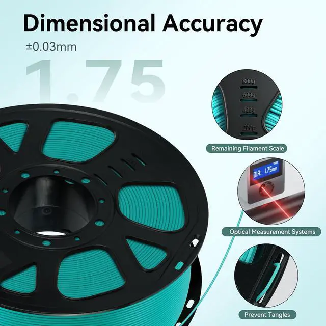 HIGH PRECISION DIMENSIONAL ACCURACY: Achieve professional-grade consistency with this Turquoise Green filament 1.75 mm PLA that features a strict diameter tolerance of +/- 0.03 mm. Advanced optical measurement systems and automatic closed-loop controls monitor the manufacturing line in real-time to maintain precise diameter uniformity. This high precision reduces extruder jamming and ensures stable material flow for prints with outstanding detail resolution and minimal artifacts