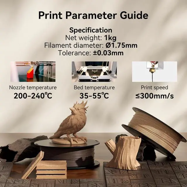 Wide Applications: Wood PLA filaments are easy to print and polish. Ideal for printing decorative items such as bird feeders, pen holders, storage boxes, flower pots and architectural models