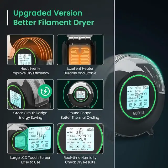 SUNLU Filament Dryer S2- As a leading 3D printing manufacturer, we' ve invested years of research to develop a product that significantly enhances 3D printing results. Our filament dryer is the great solution, improving the printing effect and optimizing the printing process.