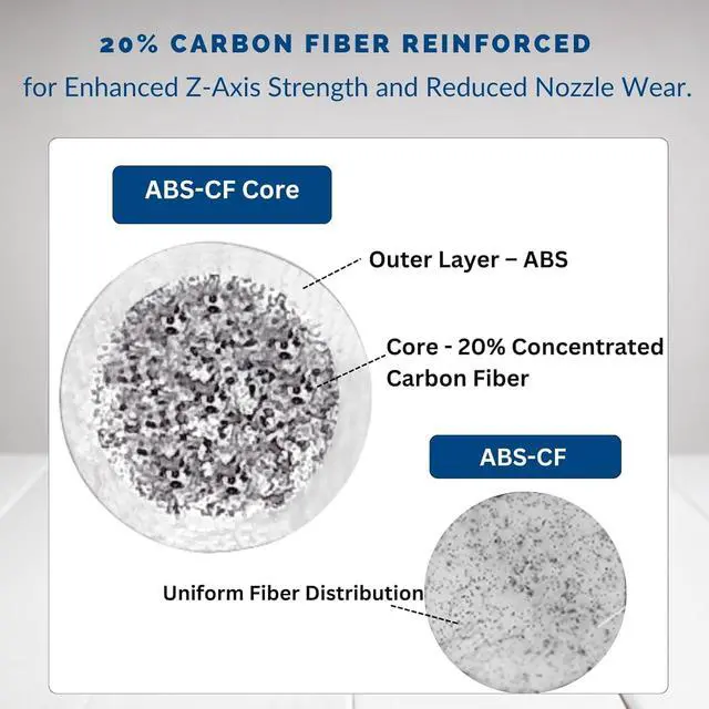 Unmatched Strength and Stiffness: ABS-CF Core 3D filament with 20% carbon fiber reinforcement, experience superior rigidity and strength that surpasses standard carbon fiber filaments, perfect for high-performance applications.