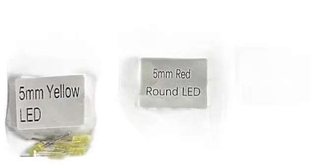 4 Pack - 20 Pc 5mm/ 3mm Generic LED Pack What You Get: 5 pc- Yellow Round 5mm Defused LEDs 5 pc- Red Round 5mm Defused LEDs 5 pc- Red Round 3mm Defused LEDs 5 pc- Green Round 5mm Defused