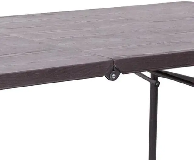 Take the stress out of hosting and say hello to the perfect solution for your seating crisis! This bi-fold plastic folding table is a great option when you need a temporary dining surface or an everyday workstation in your home or office. This versatile folding table can be dressed up or used as is with its dark colored top during holiday events, parties and arts and craft activities. Place multiple tables side by side or in rows to accommodate large party events. The waterproof, impact and stain resistant top have a 220 pound static load capacity and is commercial rated for use as a training table, in banquet halls and at trade shows.