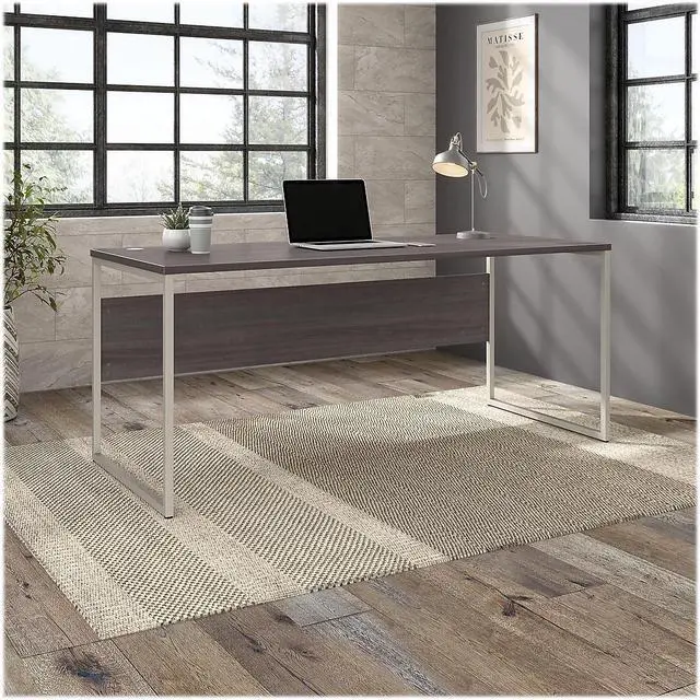The thick, dark gray tabletop is 6' long, 1.5" thick, and will seat up to 8 adults. Attractive gray powder coated legs lock securely in place while in use and non-marring floor caps protect your floor by sliding smoothly when you need to move the table. This durable, easy to clean table folds in half, making it easy to store and transport, using the convenient carrying handle attached on the side. The 30"W x 72"L Bi-Fold Dark Gray Plastic Folding Table with Carrying Handle is perfect for in-home events or on the deck or patio while entertaining during a barbeque.
