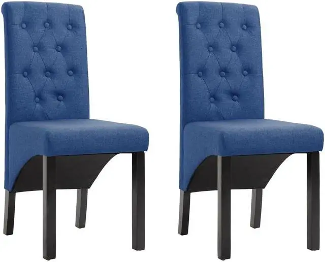 vidaXL Dining Chairs 2 Pcs Accent Side Chair with Solid Wood Legs Blue Fabric