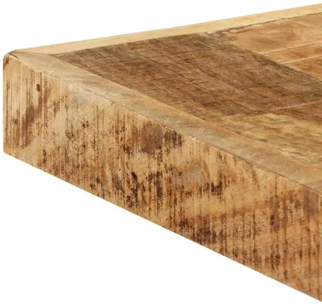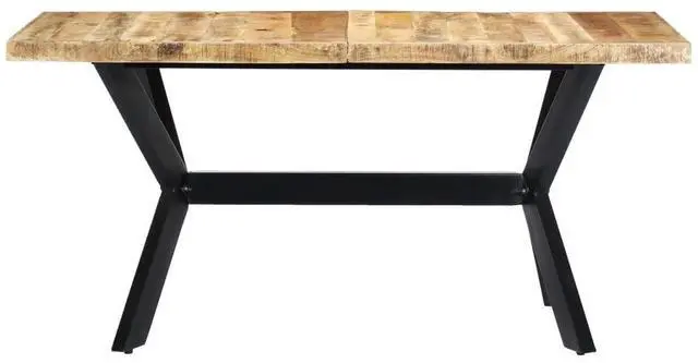 This dining table exudes an industrial style which will make a distinctive addition to your kitchen or dining room. Made of solid rough mango wood, this dining table is exceedingly stable and durable, and the exquisite craftsmanship adds to its spectacular retro style. The dining table is handmade and each step of the process is carried out with the greatest care, be it polishing or lacquering. Additionally, the steel legs complete the industrial look, along with the steel cross frame that contributes to the sturdy construction. Important note: The rough mango wood shows natural grains, making each of the dining tables unique and slightly different from the next; the delivery is random.
