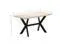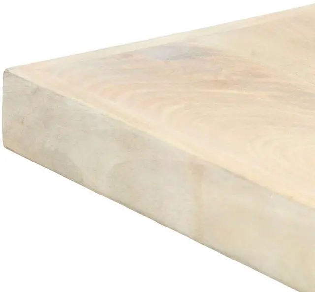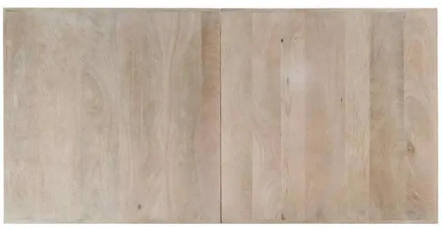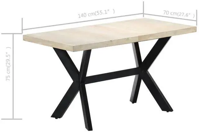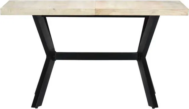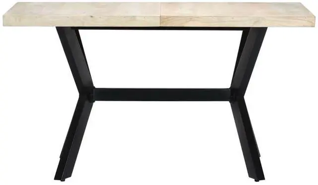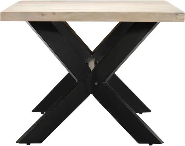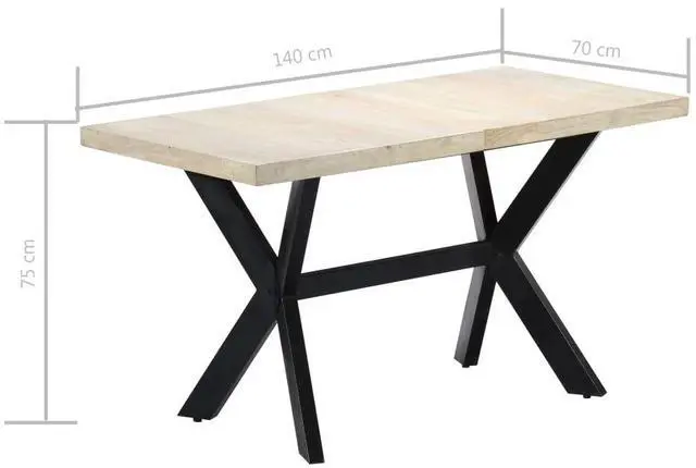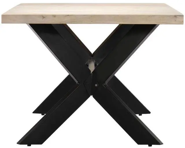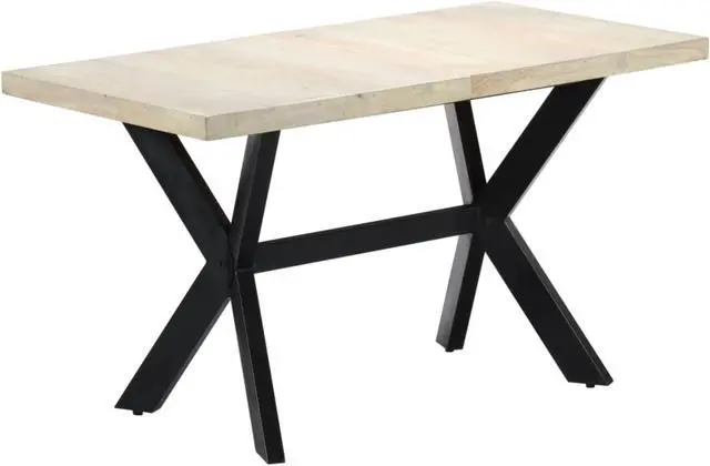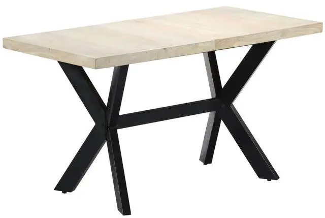 This modern dining table will make a distinctive addition to your kitchen or dining room. This dining table is made of solid mango wood that is applied to a bleached finish to give it a modern look. Mango wood is stable, durable and beautiful, and the exquisite craftsmanship adds to the table's spectacular retro style. The dining table is fully handmade and each step of the process is carried out with the greatest care. The steel legs along with the cross frame contributes to the sturdy construction. This product is easy to assemble.