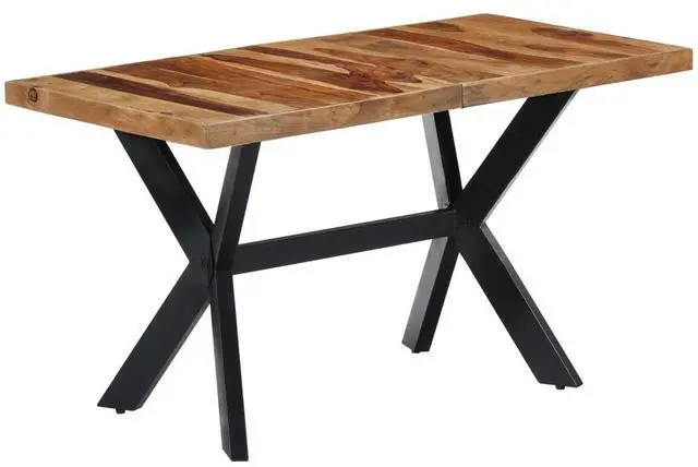 This dining table is beautifully made from solid Acacia wood, showcasing a warm, natural brown tone that adds elegance to any dining area. It has a bold industrial design with a strong black powder-coated steel frame that complements the vintage style, fitting both modern and classic decors. Perfect for family meals or entertaining friends, this table not only serves as a practical piece but also enhances the overall feel of your dining room or kitchen.