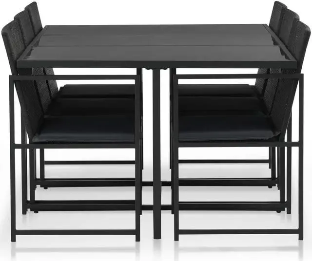 Thanks to the water-resistant PE rattan, the seat area and backrest of chairs are easy to clean and durable. The powder-coated steel frames also make the set of furniture strong and stable. It comes with a stylish table to match our elegant chairs. This garden set is easy to assemble. Delivery includes 1 table, 6 chairs and 6 seat cushions.