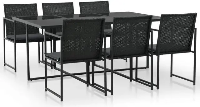 Material: PE (polyethylene) rattan + glass tabletop + powder-coated steel frame