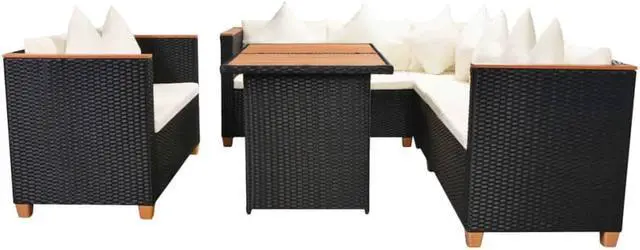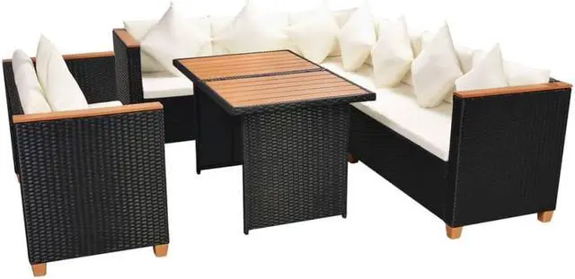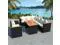 This rattan dining set combines style and functionality, and will become the focal point of your garden or patio. The whole furniture set is designed to be used outdoors year-round. Thanks to the weather-resistant and waterproof PE rattan, the patio dining set is easy to clean, hard-wearing and suitable for daily outdoor use. The patio furniture set features a sturdy powder-coated steel frame, which is highly durable. It is also lightweight and modular, which makes it completely flexible and easy to move around to suit any setting. This set is delivered with highly comfortable, thickly padded seat and back cushions.