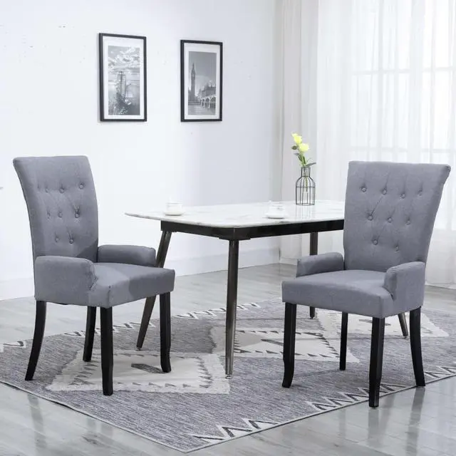 Our dining chair features an elegant and timeless design, which will make an eye-catching statement in your dining room or kitchen. Topped with thick, soft-to-the-touch upholstery, this armchair is ergonomically designed to offer you comfortable seating experience. The solid wooden legs add to the chair's stability and sturdiness. The dining chair is easy to assemble. Delivery includes 1 dining chair.