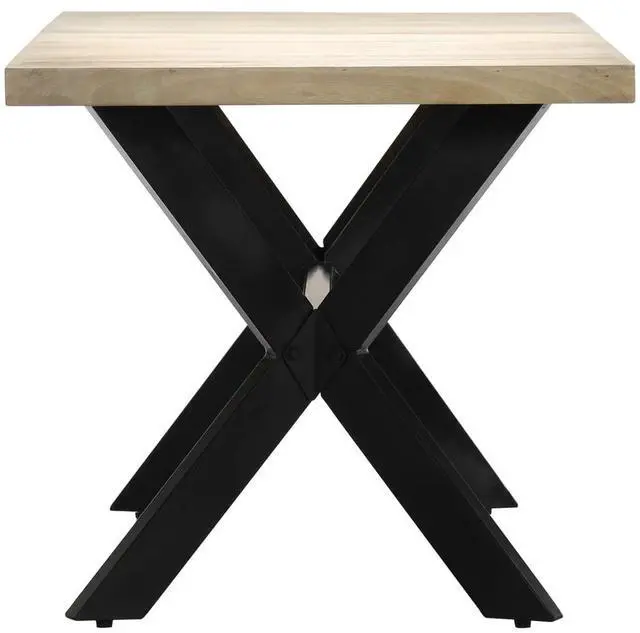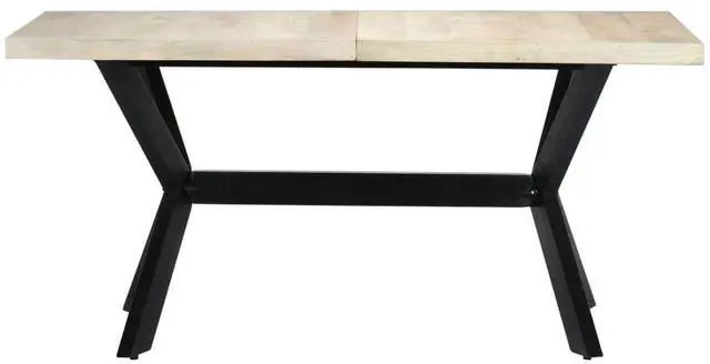 Made of solid mango wood, this dining table is exceedingly stable and durable, and the exquisite craftsmanship adds to its spectacular modern style. The dining table is handmade and each step of the process is carried out with the greatest care, be it polishing or lacquering. Additionally, the steel legs complete the industrial look, along with the steel cross frame that contributes to the sturdy construction.