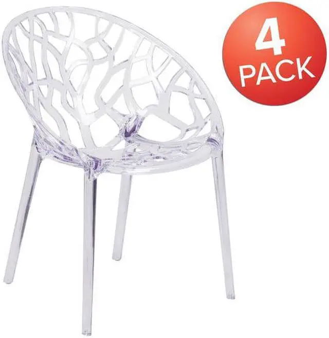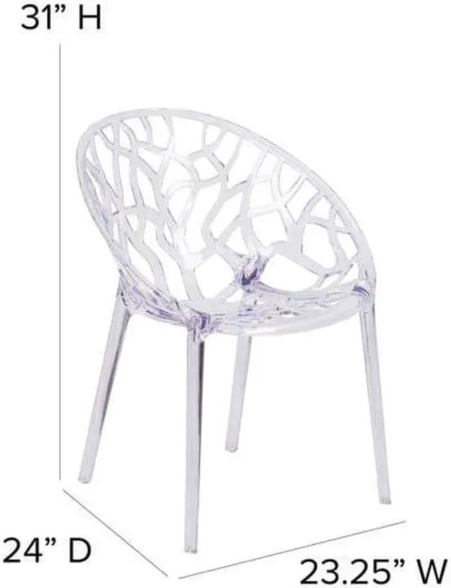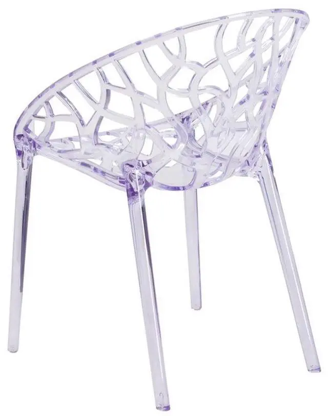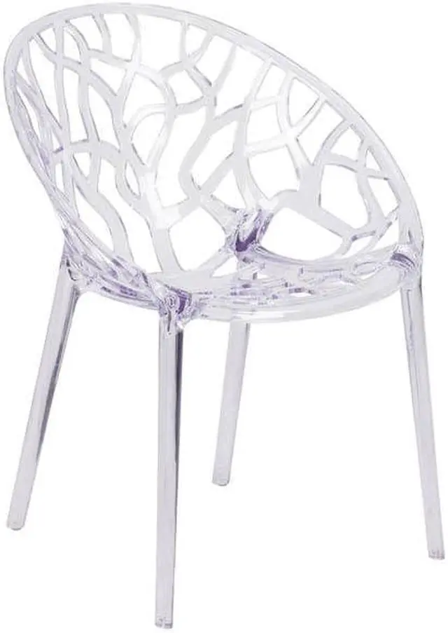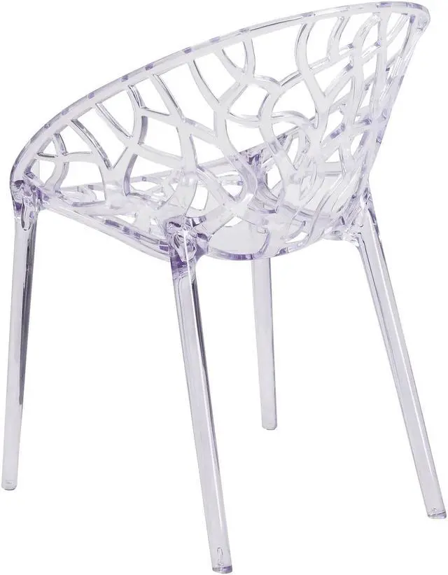 Create a beautiful and artistic statement with this transparent accent chair. With its intricate cut-out design and modern shape, you'll fall in love with this chair. The transparency of the chair allows it to take up less space visually as with a solid chair. This chair was crafted with an ingenious combination of lightness and strength. Due to its stacking capabilities, elegant design and use in indoor and outdoor locale this chair can be used in diverse environments.