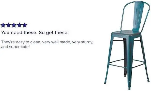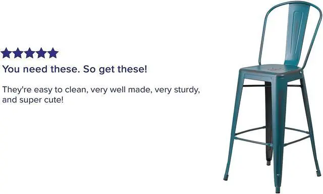 • Bistro Style Barstool,Curved Back with Vertical Slat,Drain Hole in Seat,Distressed Kelly Blue Powder Coat Finish