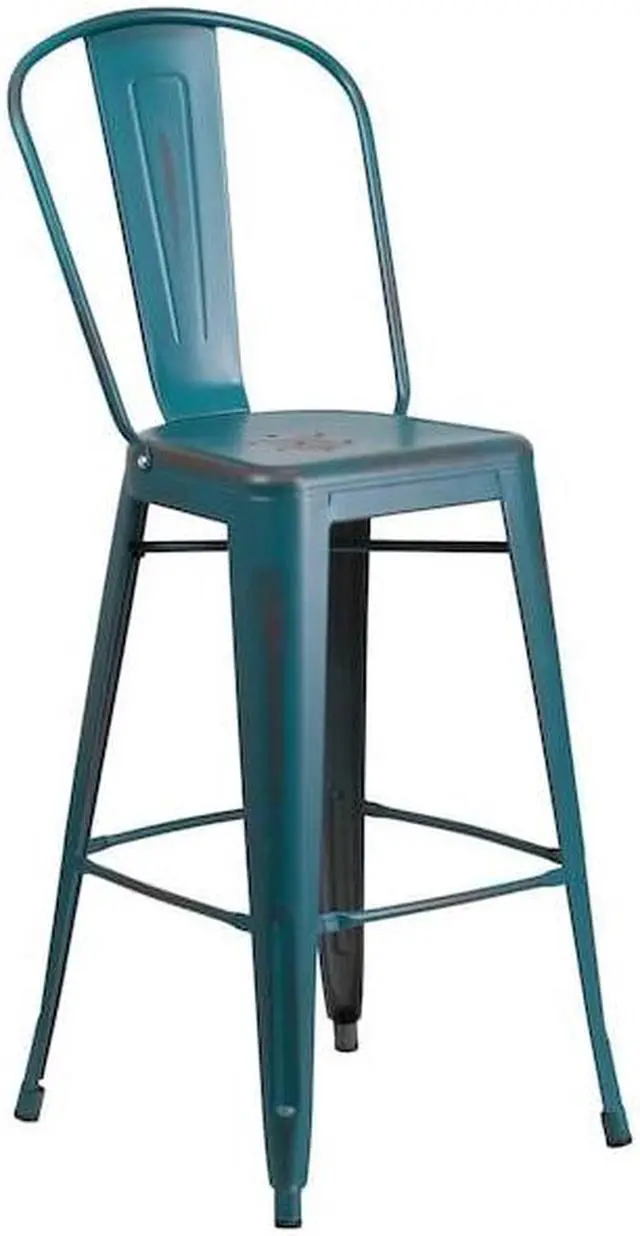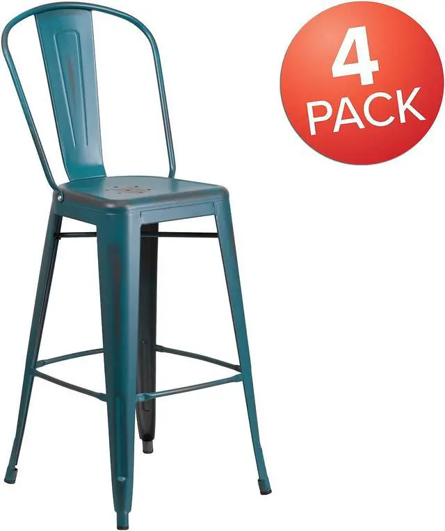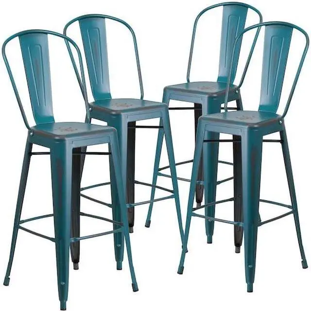 4 Pk. 30'' High Distressed Kelly Blue Metal Indoor Barstool with Back