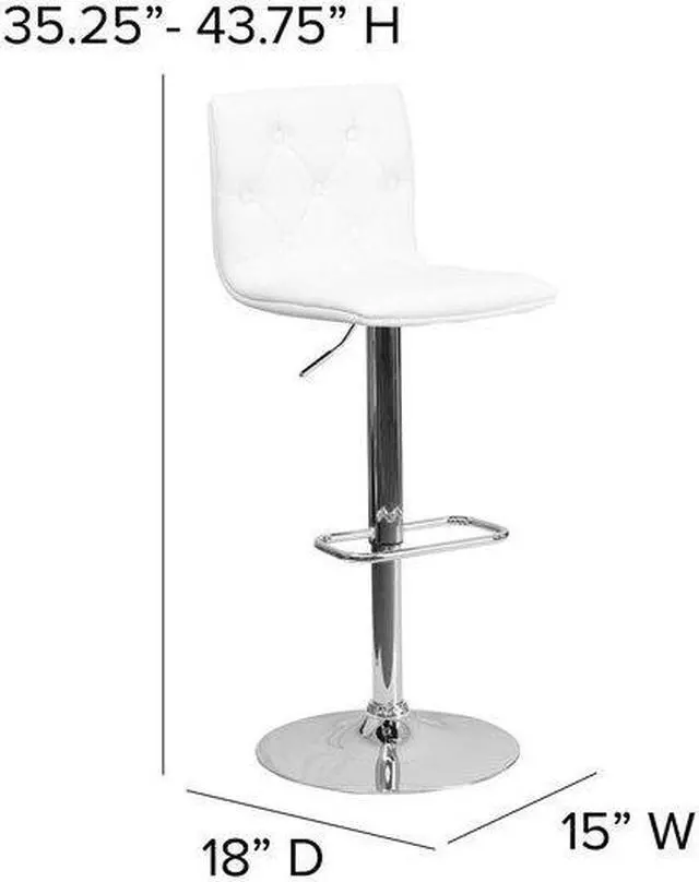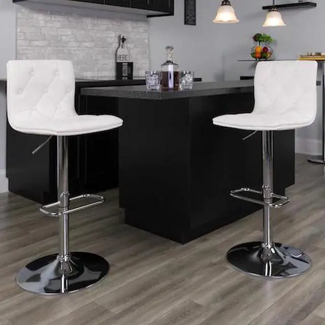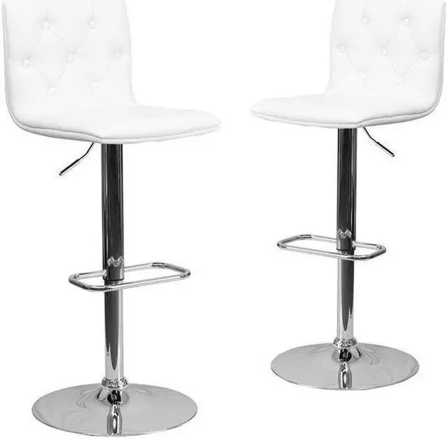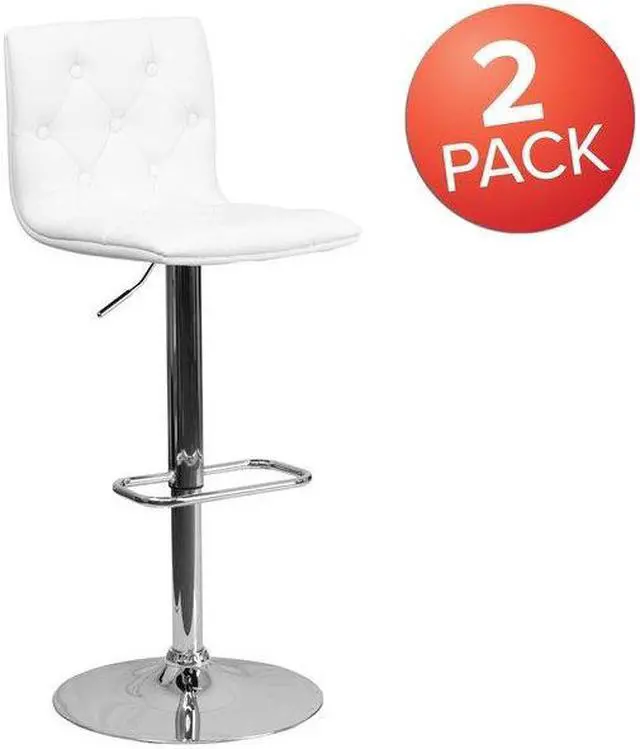 2 Pk. Contemporary Tufted White Vinyl Adjustable Height Barstool with Chrome Base