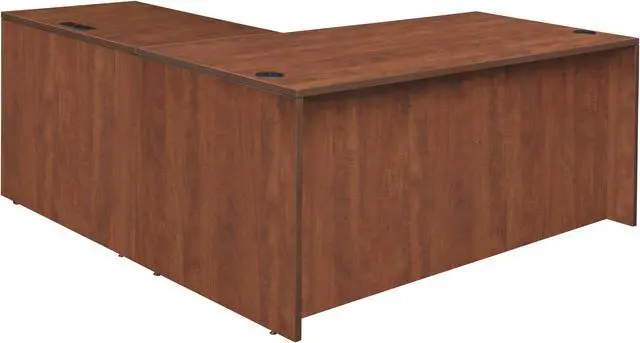 Versatility is just the beginning with so many Legacy desking options. This classic L-shaped corner desk is a great choice for professional and home offices alike. It comes with one box-box-file pedestal and one file-file pedestal. All file drawers accept letter and legal filing while box drawers keep supplies handy. All drawers lock and include ergonomically designed drawer pulls for convenience and ease in operation. Adjustable glides on the bottom of the base keep the desktop level and are easy to adjust. Wire management grommets keep cables clear of work areas. Finished in an stylish Cherry laminate, this desk coordinates with other Legacy furniture.
