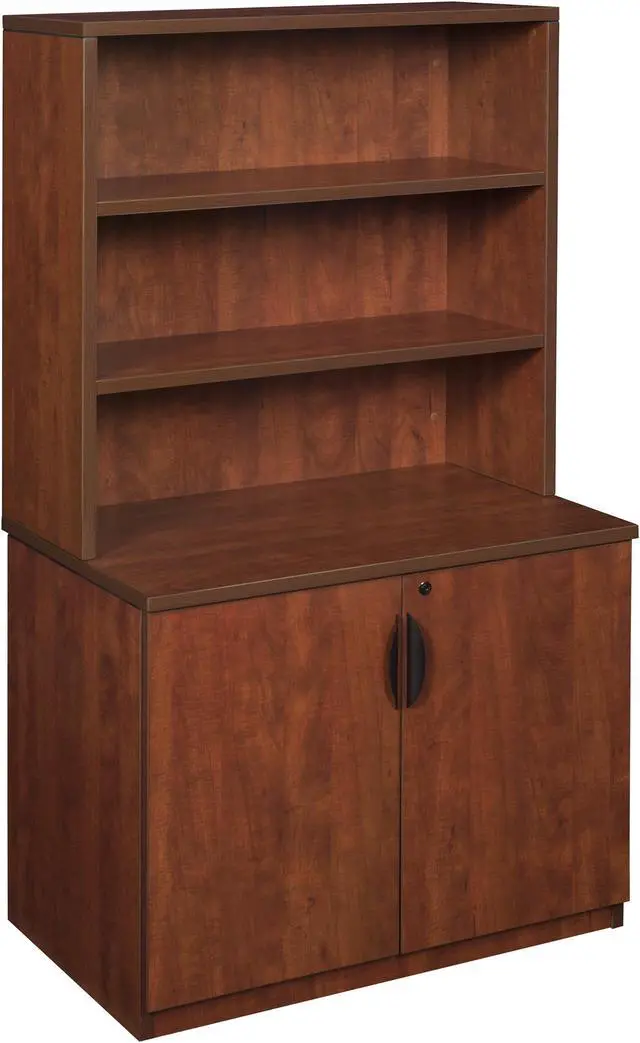 Finished in an attractive Cherry laminate, storage components coordinate with other Legacy furniture which makes customizing easy. The Legacy collection is constructed of a 1-inch thick thermal fused melamine laminate with a 3-millimeter commercial grade matching PVC edge. Laminates are scratch, stain and scald resistant. Legacy casegoods are backed by a 10-year limited manufacturer's warranty.
