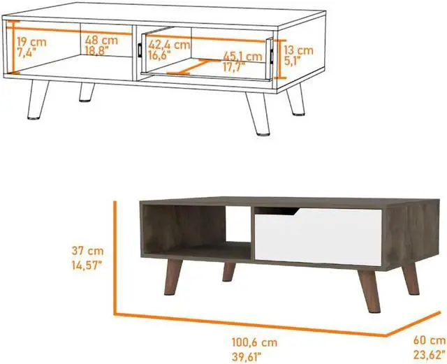 Do you like to keep everything tidy and organized in your living room with your own style? The new Hamburg coffee table 2.0 is perfect for those who like to keep everything tidy and organized. This table has a spacious countertop(46,11'') perfect for holding books, magazines, or your favorite cup of coffee. The sleek design of this table will complement any décor, making it the ideal addition to your home.