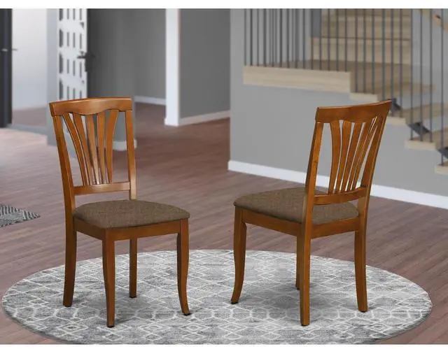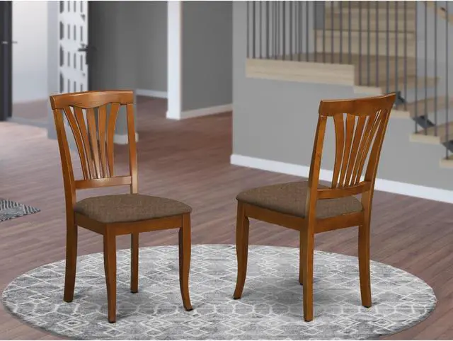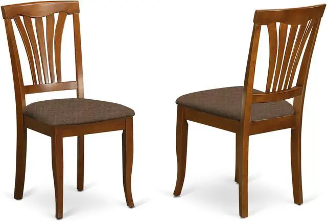 Avon Chair for dining room with Microfiber Upholstered Seat - Saddle Brow Finish. High-caliber lounge chairs created all very solid Asian wood. No MDF, heat treated wood, particle aboard or venner used. Includes a vertical slatted back. Gently arced