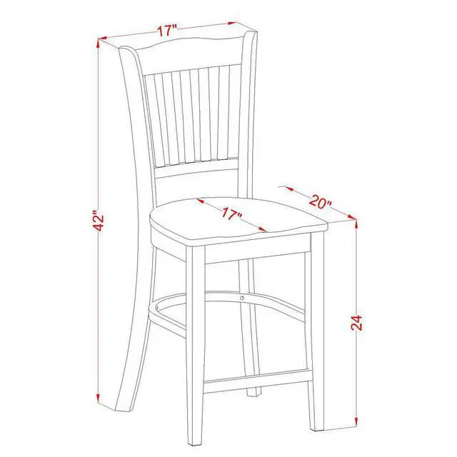 Improve the appearance of your dining room with the style of solid rubber wood counter height dining chair. It is best for weekday meals and family unit gatherings. This dining room chair is effortless to wipe clean with a dry cloth and no need to apply strong liquid cleaners. It creates a welcome addition and a touch of progressive for your dining-room or kitchen. Manufactured from Asian Hardwood for years of use and Oak wood seat it go well with most home decor styles.