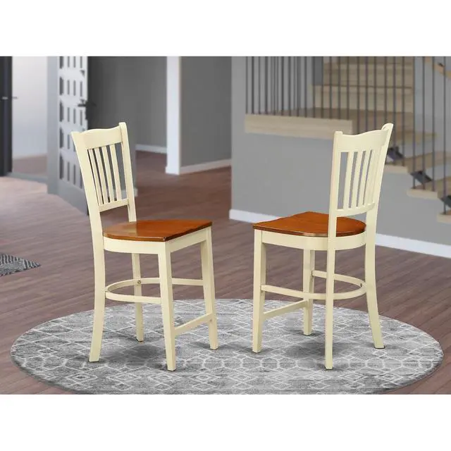 Improve the appearance of your dining room with the style of solid rubber wood bar stools with backs. It is best for weekday meals and family members gatherings. This kitchen dining chair is effortless to wipe clean with a dry cloth and no need to apply strong liquid cleaners. It creates a welcome addition and a touch of progressive for your dining space or kitchen. Built from Asian Hardwood for years of use and Buttermilk & Cherry wood seat helps it blend in with most home decor styles.