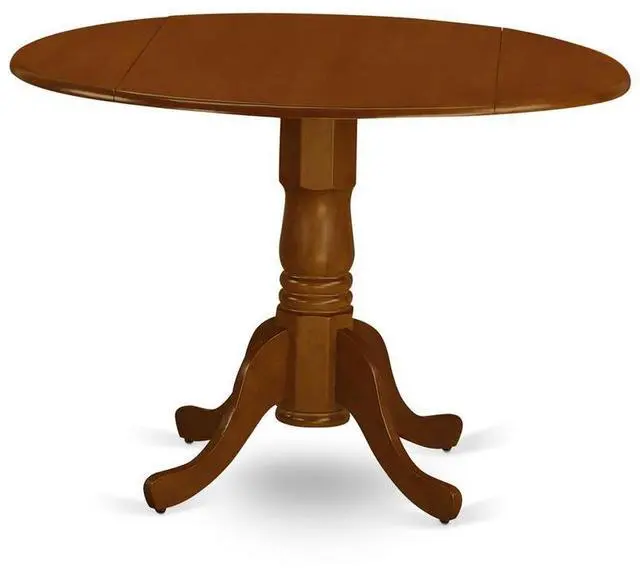 This excellent round kitchen table features a Saddle Brown color that enhances a number of different attractive themes. The smooth color of the table subtly reflects light to enhance the living area and showcase the dining room tables, kitchen dining chair. The extendable leaf can be easily expanded making dining area for personal occasions or great parties. A single bevel edge and a rounded finish provide this dining room tables fits into a small kicthen space, great for compact apartments.