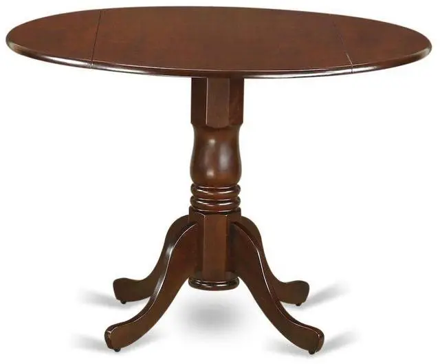 This excellent round small kitchen table features a Mahogany color that enhances a number of distinct attractive themes. The sleek color of the dinette table subtly reflects light to lighten up the living area and showcase the dining room tables, kitchen dining chair. The extendable leaf can be easily expanded making dining-room for personal occasions or great parties. A single bevel edge and a rounded finish provide this dining room tables fits into a small kicthen space, great for compact apartments.