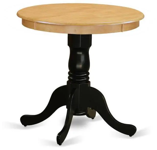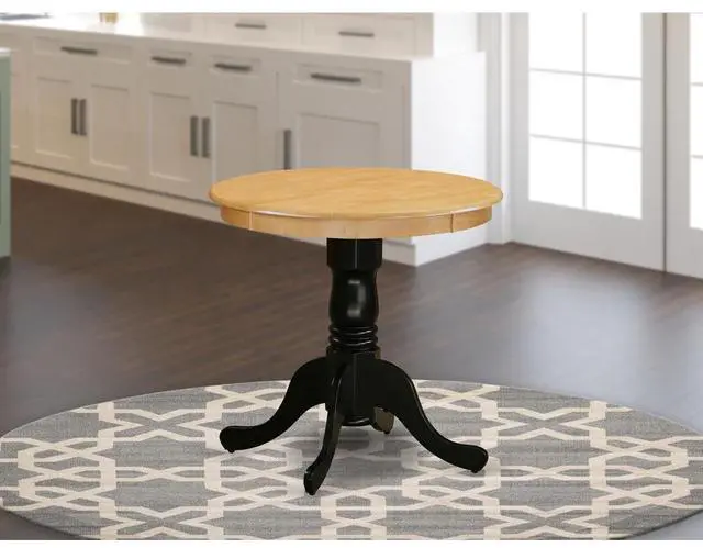 Furnish your dinette area with this stylish small EMT-OBK-TP Eden dining table. The round shape wooden table features a pedestal base that will decorate your dining area with a sophisticated look. With a soft rounded bevel at the edge of the table top, this well-designed and comfortable kitchen dinette table may be used for hours at a time. This small dining table requires a very little space and would be a great choice if you are struggling with space in your dining area. Made up of rubber wood, the Oak finish table top is stable and the Wire Brushed Black finish pedestal offers a sturdy finish.
