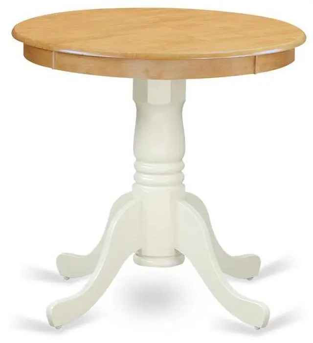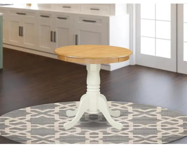 Furnish your dinette area with this stylish small EMT-OLW-TP Eden dining table. The round shape wooden table features a pedestal base that will decorate your dining area with a sophisticated look. With a soft rounded bevel at the edge of the table top, this well-designed and comfortable kitchen dinette table may be used for hours at a time. This small dining table requires a very little space and would be a great choice if you are struggling with space in your dining area. Made up of rubber wood, the Oak finish table top is stable and the Linen White finish pedestal offers a sturdy finish.