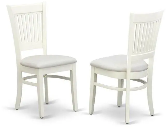 Take the kitchen or dining area to the next level with our innovative design modern dining chairs. Including 2 slatted back dining chairs with slightly curved angles throughout, in a bright Linen White colored finish. The dining chairs feature a conventional style with a painted, fresh Linen White finish for a simple, yet stylish wood dining chair. Enjoy meals with your family, with this classy kitchen dining chair set. High slatted back wood dining chair appears noble and classy. This listing has a Linen White Finish Dining Chairs of slatted back.