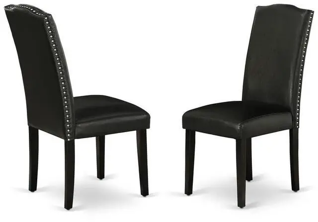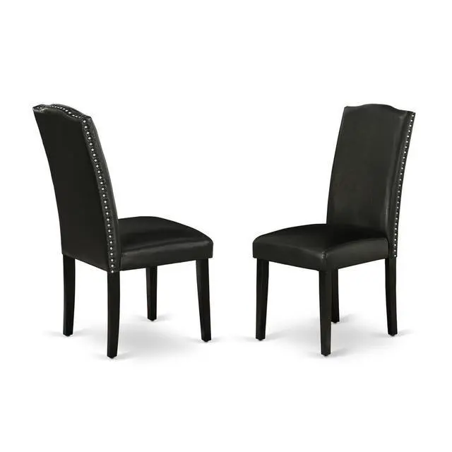 This simple but charming set of 2 Parsons chairs will add ambiance and style to your dining-room. Give your home a pop of chic style with this must-have Parsons chair. A contemporary twist on a classic design, this eye-catching design will liven up any look. The traditional parsons gives this chair a touch of familiar charm, while the Pu Leather-Black Color and clean-lined design elevate this chair with modern flair. Ready to give your dining room a new look? Just by switching out your chairs, you can effortlessly refresh your space.