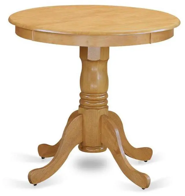 Furnish your dinette area with this stylish small EMT-OAK-TP Eden dining table. The round shape wooden table features a pedestal base that will decorate your dining area with a sophisticated look. With a soft rounded bevel at the edge of the table top, this well-designed and comfortable kitchen dinette table may be used for hours at a time. This small dining table requires a very little space and would be a great choice if you are struggling with space in your dining area. Made up of rubber wood, the Oak finish table is stable and offers a sturdy finish.