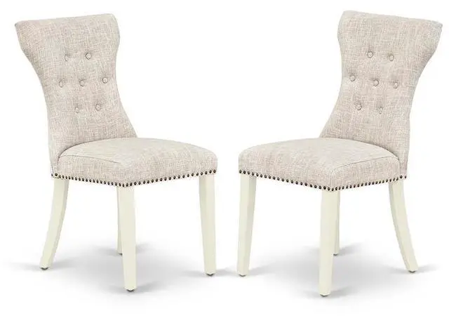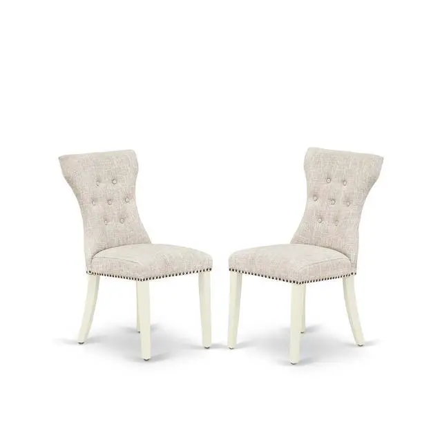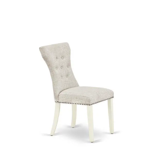 Bring an exquisite touch to your dining area with our stunning dining chairs. The state-of-the-art button tufted back design of these chairs will enhance the allure of any dining table. Experience exceptional back support with the comfortable hardwood construction of these kitchen chairs. Crafted from high-quality Asian wood (Rubber Wood), these innovative kitchen dining chairs offer impressive durability and stability, along with padded parson seats for added comfort. The soft and cozy foam-padded seats are elegantly covered in premium Doeskin Linen Fabric, providing a delightful appearance and a comfortable sitting experience. With their innovative solid wood frame, trendy button tufted back, and sturdy stylish legs, these modern dining room chairs bring a fresh look to your dining space, offering both stability and comfort for your back.